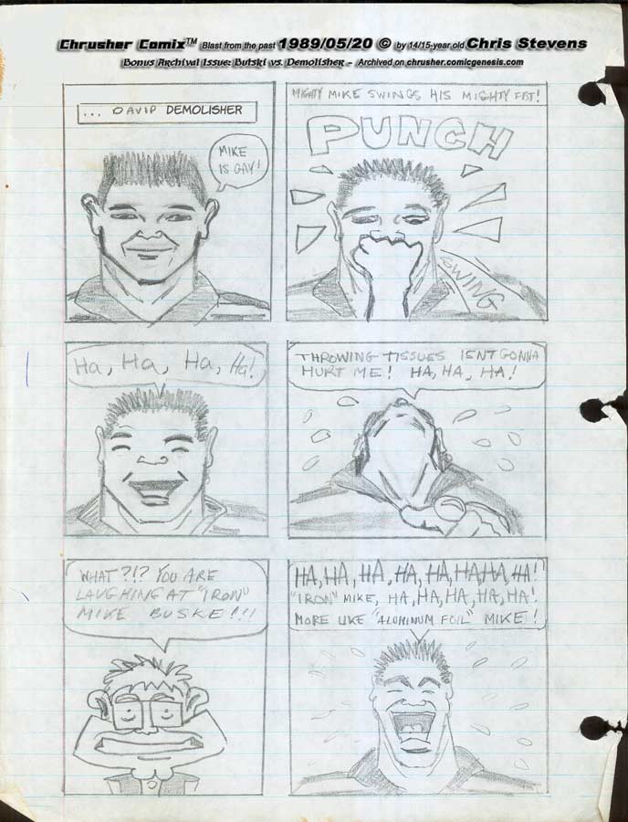 "HA HA HA HA! Iron Mike?! More like paper-thin Aluminum Foil Mike!" - David Demolisher