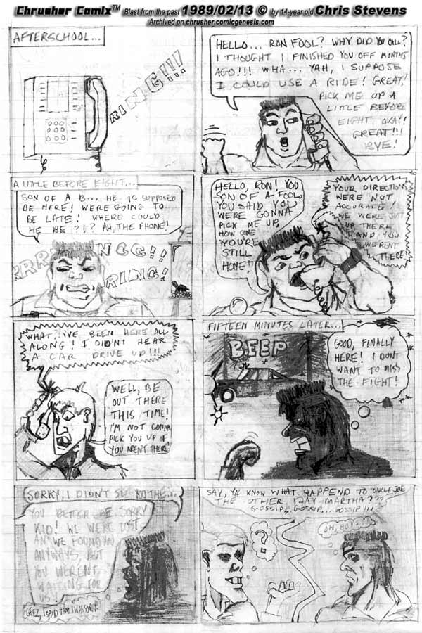 A lot of my comics are fiction. However, this page was not.. it was literally a documentary of an event that really happened back then. In fact, if I hadn't done this page, I would have literally forgotten about it entirely. I vividly recalled the event years later reading it. © 1988-89 Chris Stevens